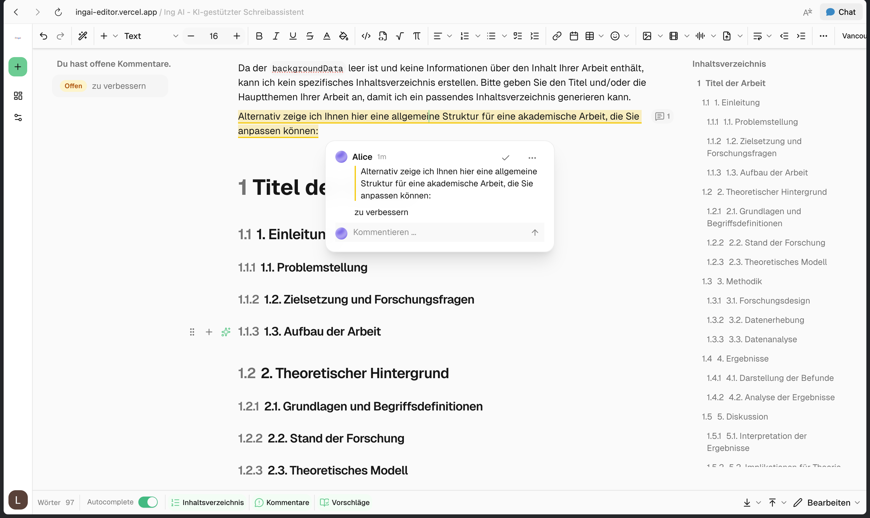 Open menu